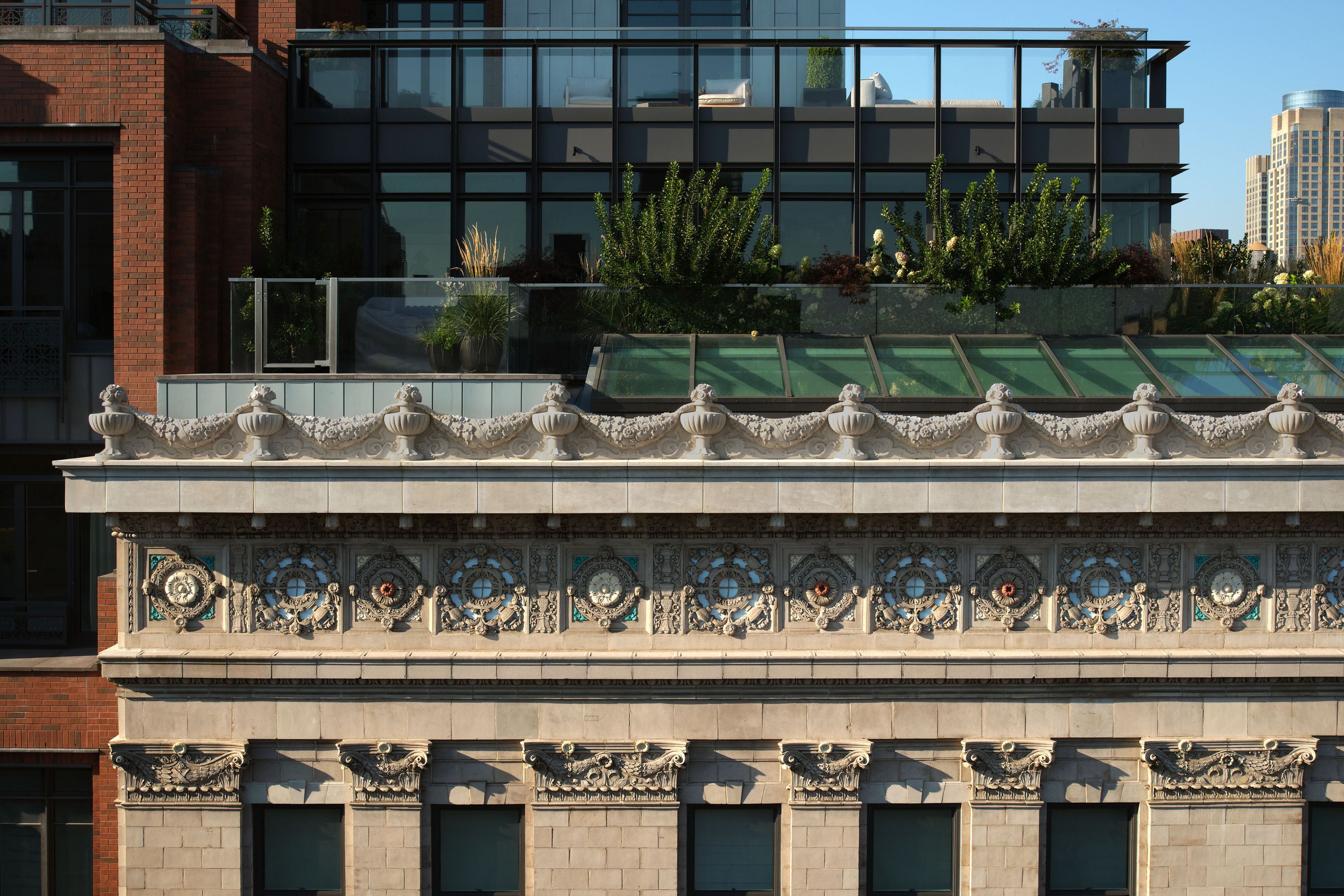 At the eighth floor, ornamental balconies originally constructed in 1915 and later removed were reintroduced using cantilevered steel framing. The existing cinder slabs were structurally evaluated and either reinforced or replaced in select areas to meet required load-bearing criteria.