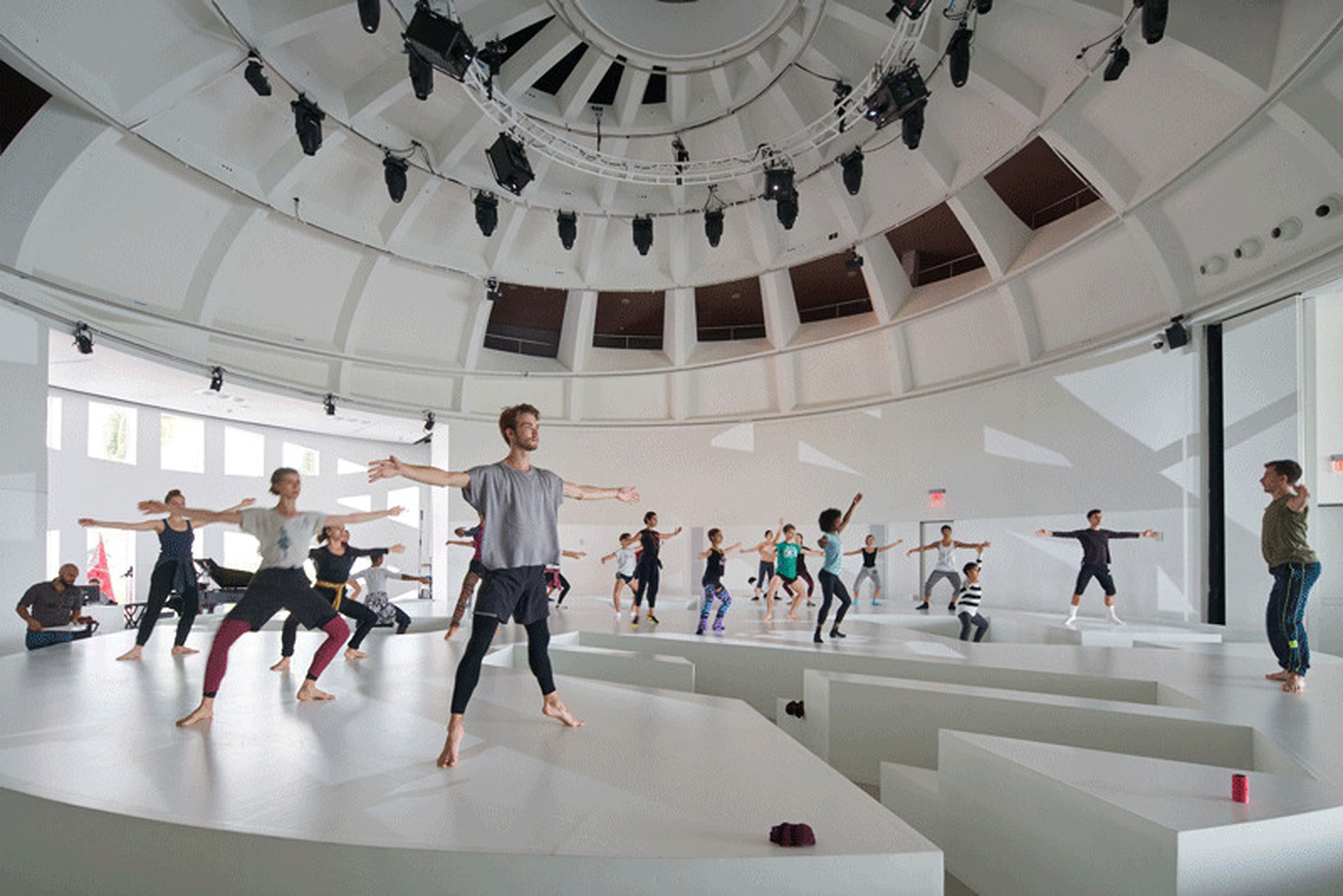 The Faena Forum, by OMA, features a cylindrical performance hall cantilevered from a rectilinear volume. DeSimone engineered the building’s cast-in-place concrete arches and slab-edge framing to support the sculptural overhang without interior columns. A finite-element sequencing model determined how much of the cube had to be built and cured to safely anchor the cantilever before its shoring was removed.