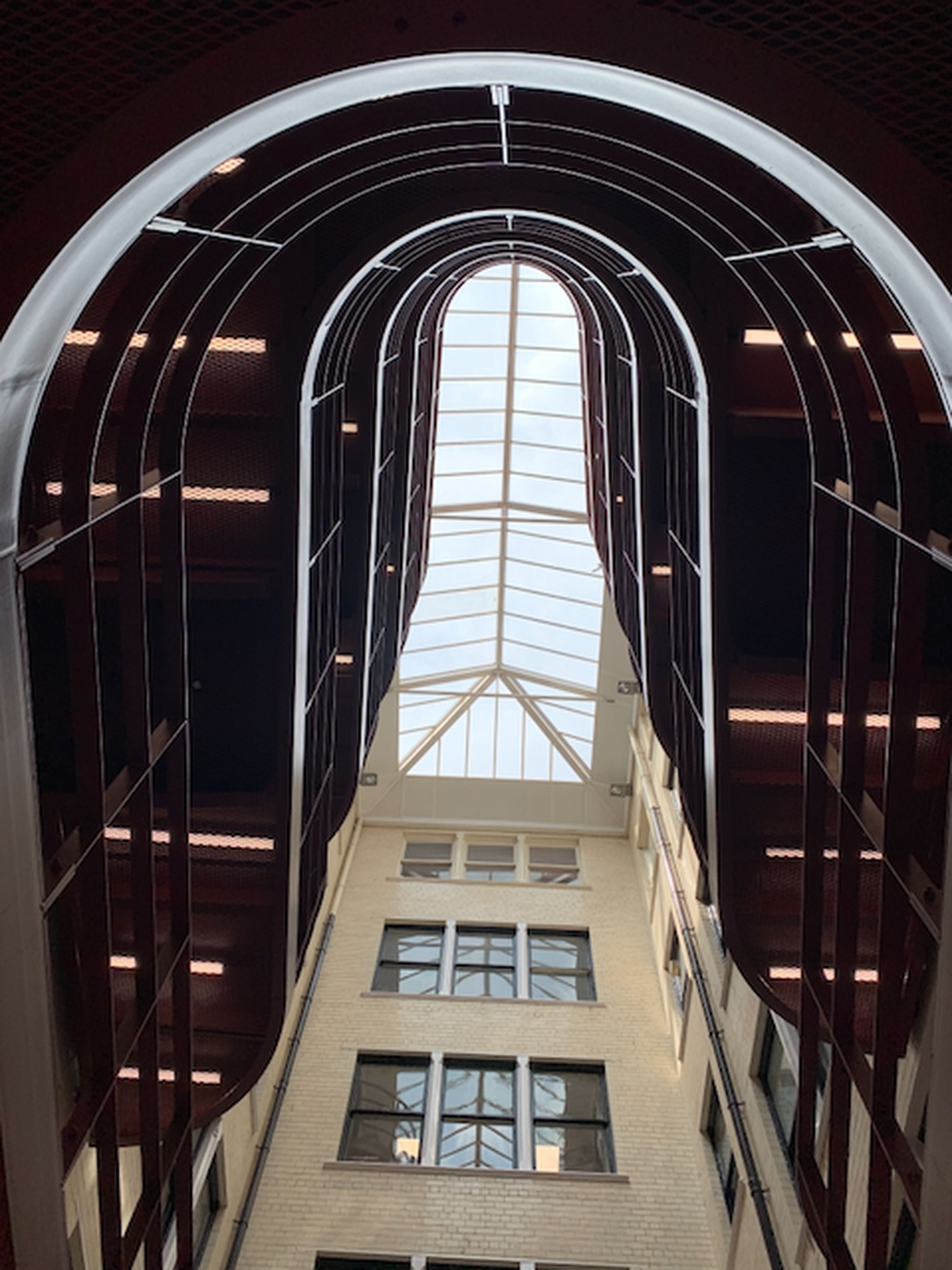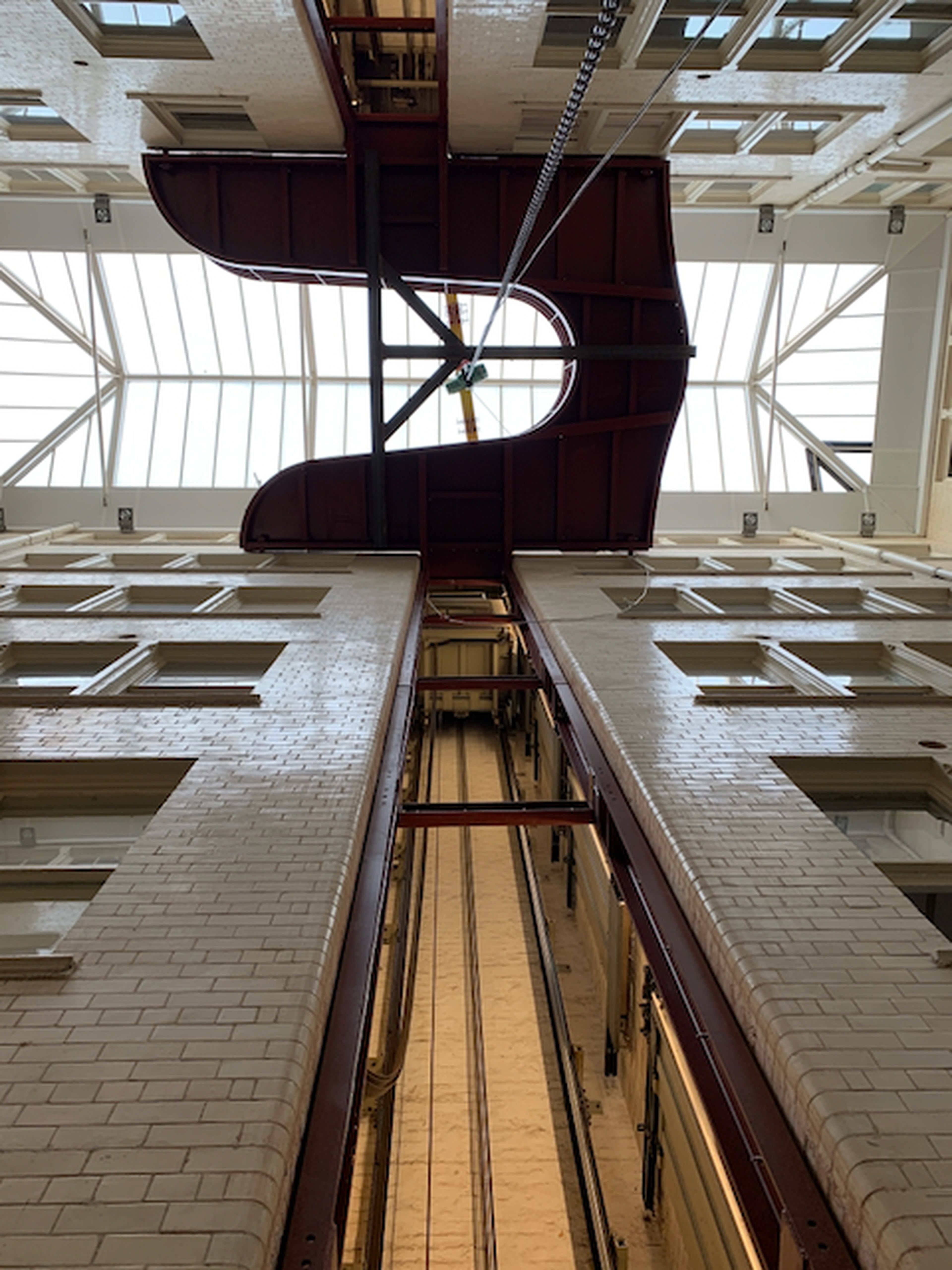Our structural engineering team helped refine the original design by strategically rationalizing its internal spaces. To improve how users move between the two halves of the building, we designed sinuous bridges—walkways that span the atrium (from floor- to-floor and elevator-to-elevator). To create a clean and open space, we located the bridge anchors out of sight within the elevator shafts.