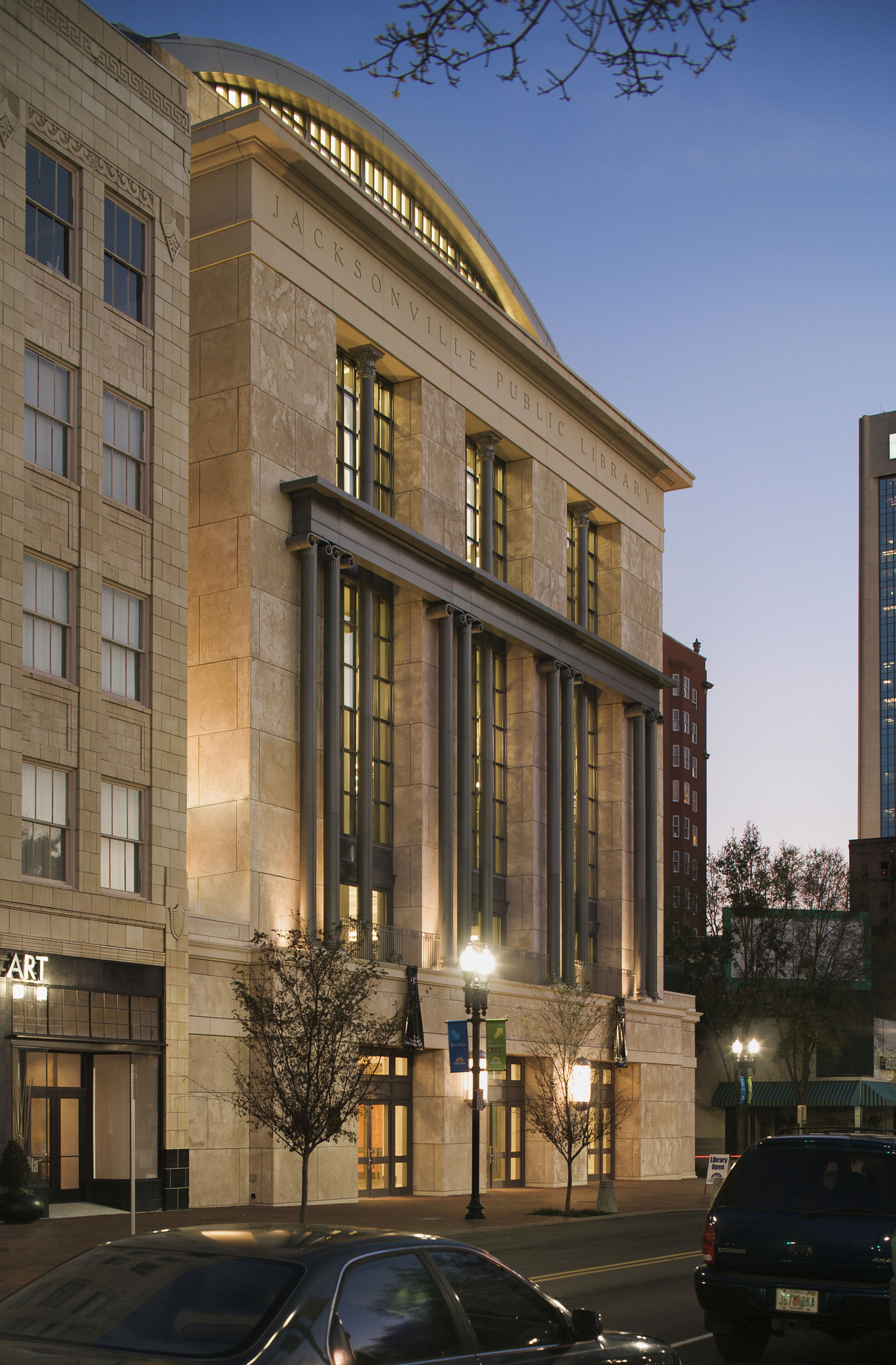 Situated downtown among Jacksonville’s classically inspired, centuries-old civic buildings, the new Main Library is a highly efficient, state-of-the-art facility designed to accommodate the city’s evolving needs. Tripling the size of the city’s previous facility, the building now comfortably houses a 2.2 million book collection, and offers a grand reading room, 400-seat auditorium, multi-purpose room, 600-car garage, and other amenities.