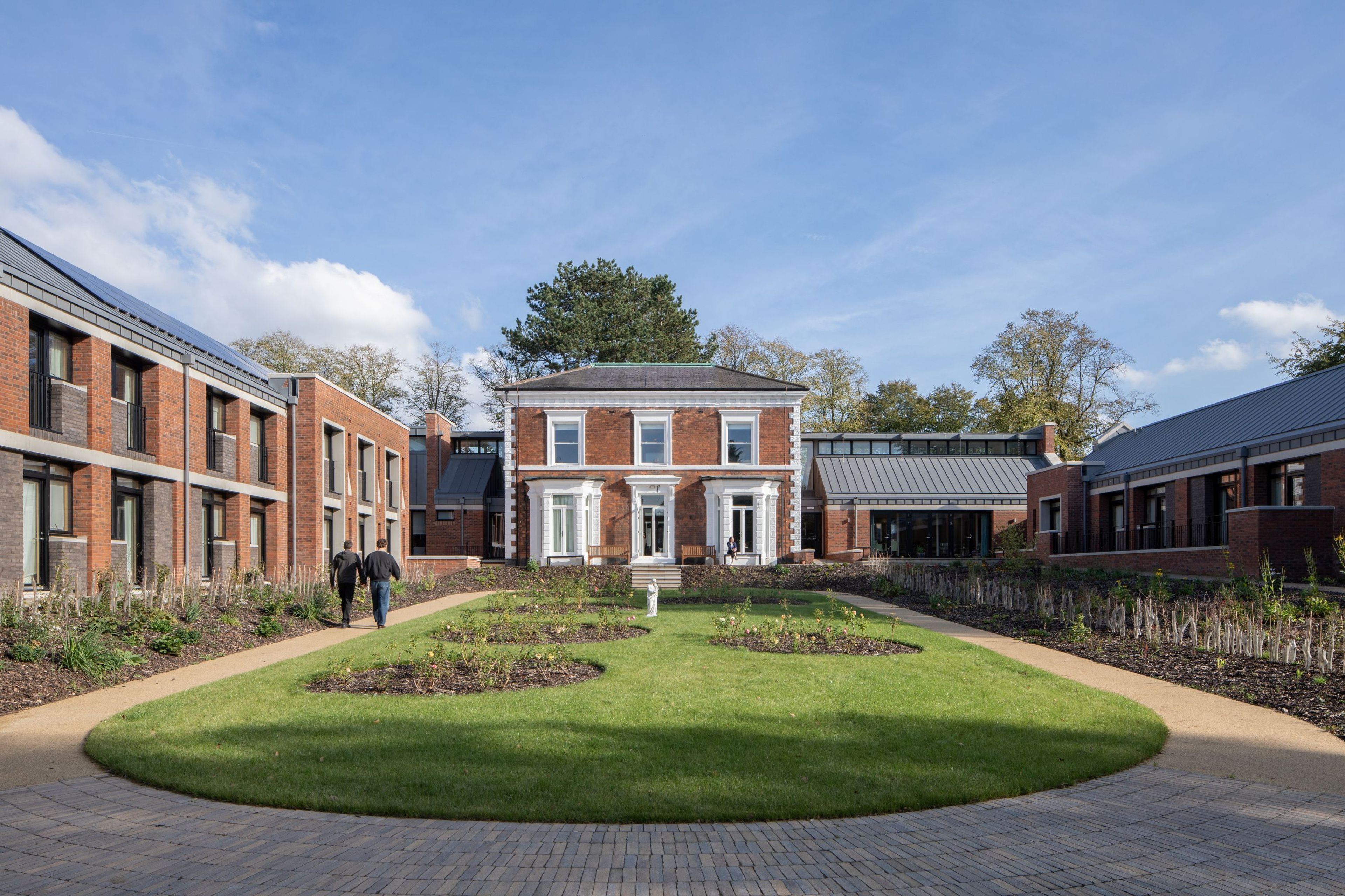Developed in collaboration with the local community, the new program includes 24 bedrooms, offices and meeting rooms, a library, and a new chapel and solves longstanding issues of privacy, air circulation, and accessibility within the building and the exterior landscaped areas.