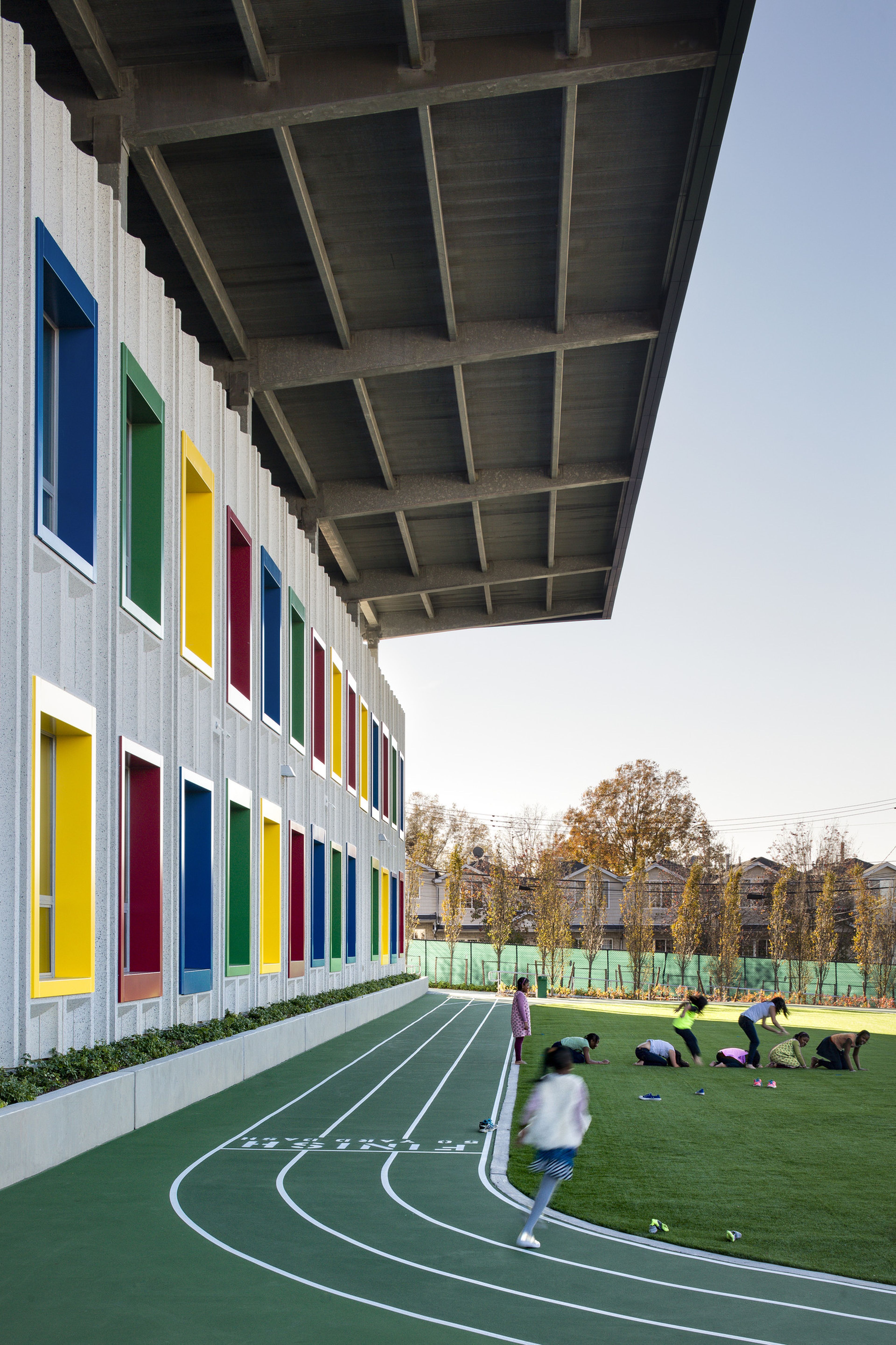 As structural engineer, DeSimone designed a steel frame for the classroom wing, organized around daylit corridors, and provided a larger-span system for the multipurpose wing that houses the gymnasium and cafeteria.