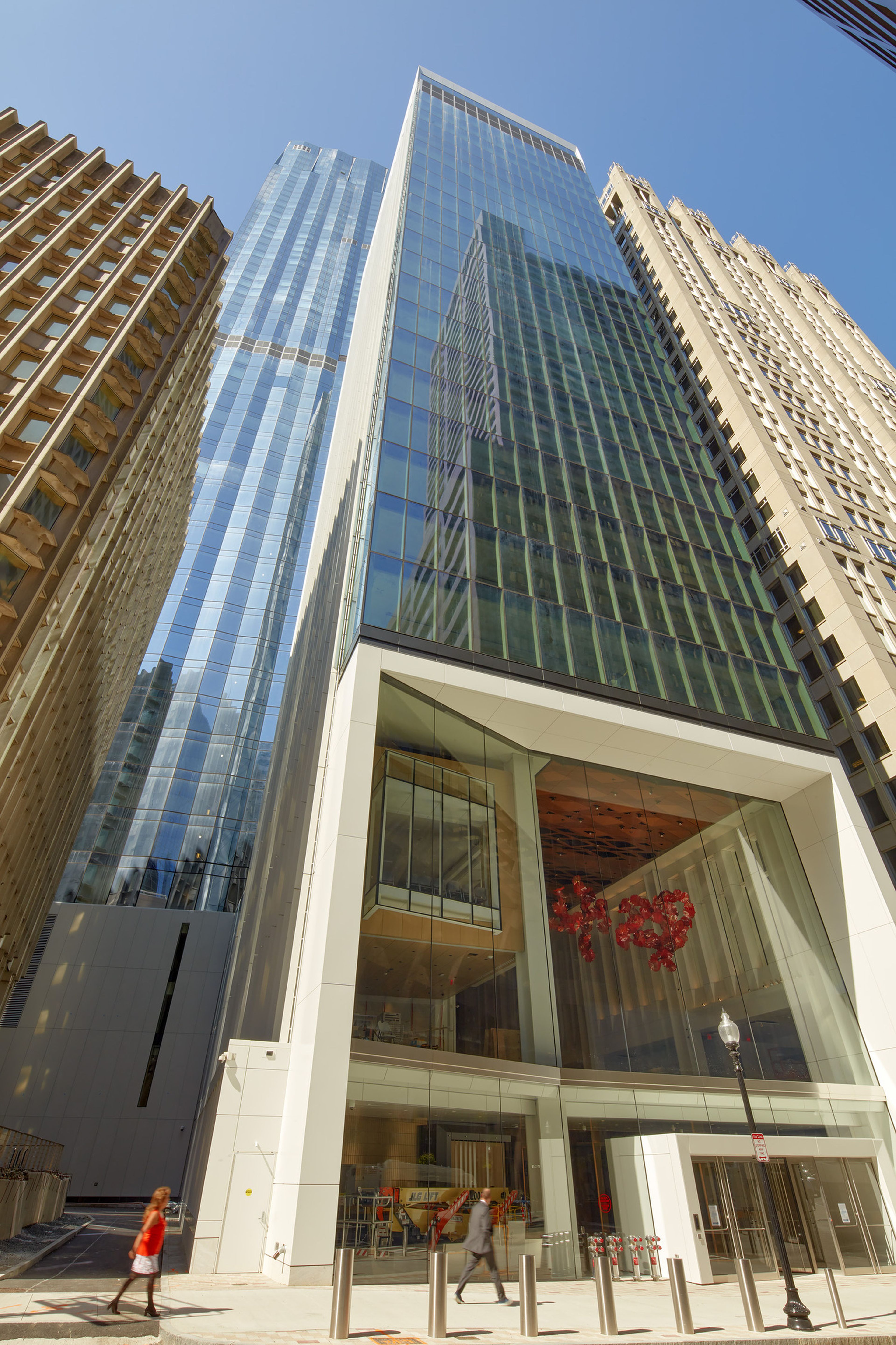 The hybrid building program called for a combination of office floors at the base of the tower with residential floors above. To unify the incongruous column grids, we engineered a 20 million-pound “sky mat” at the 23rd floor, which transfers column loads from the residential floors above to the office floors below.