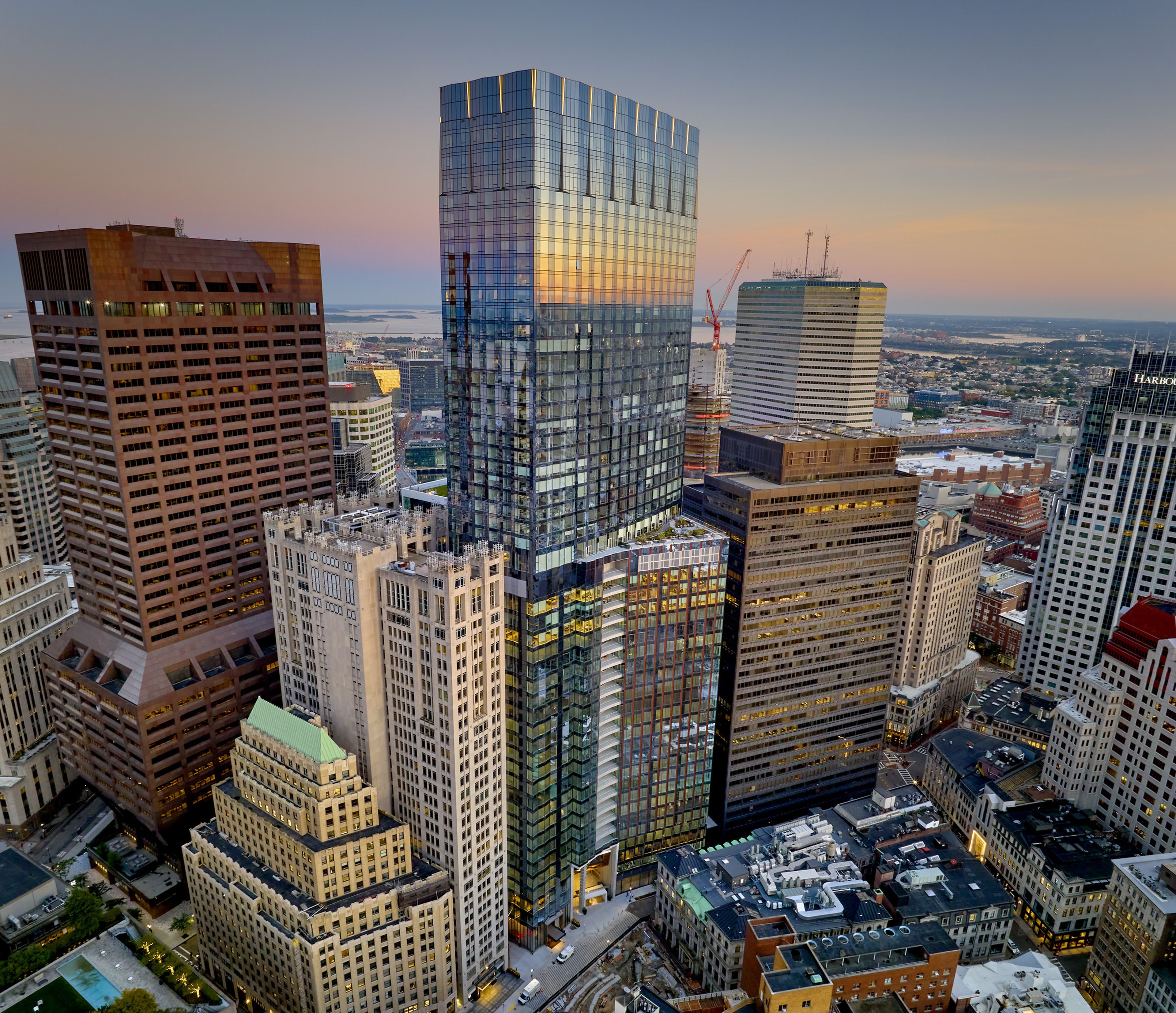 Our approach to the structural design of this 53-story, 1.8M-SF mixed-use tower navigated between two competing priorities: complying with FAA height restrictions and maximizing rentable space. Upon initial permitting, comments from the FAA and the city required capping the project at 700 feet (213 meters), meaning we had to deliver the client’s 775-foot (236-meter) vision through a shorter tower. To address this, DeSimone selected cast-in-place concrete for the primary structure—an uncommon choice for a commercial tower in Boston, historically a steel town. By using concrete, which requires less space, we maximized floor-to-floor heights and added five floors beyond what would have been possible with steel.